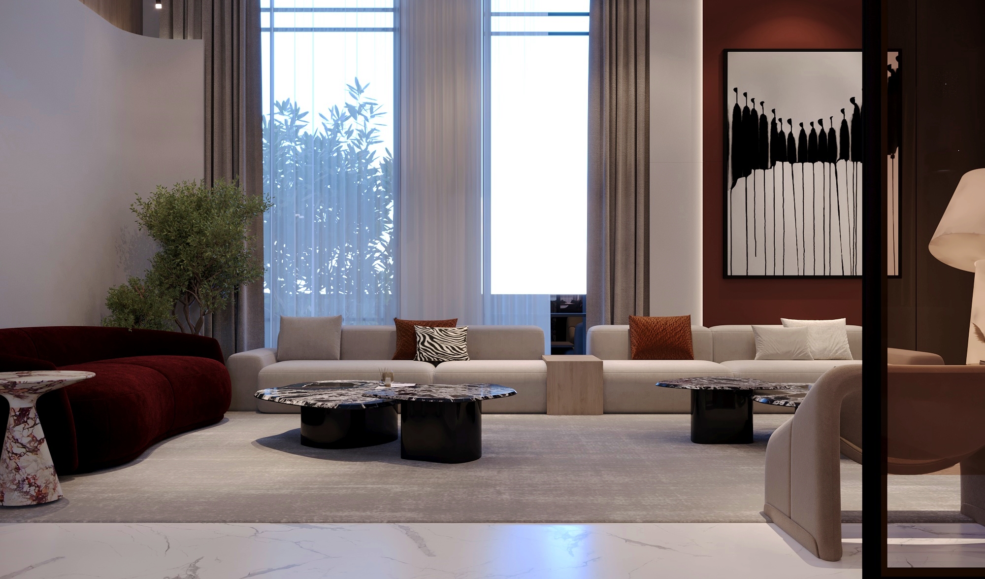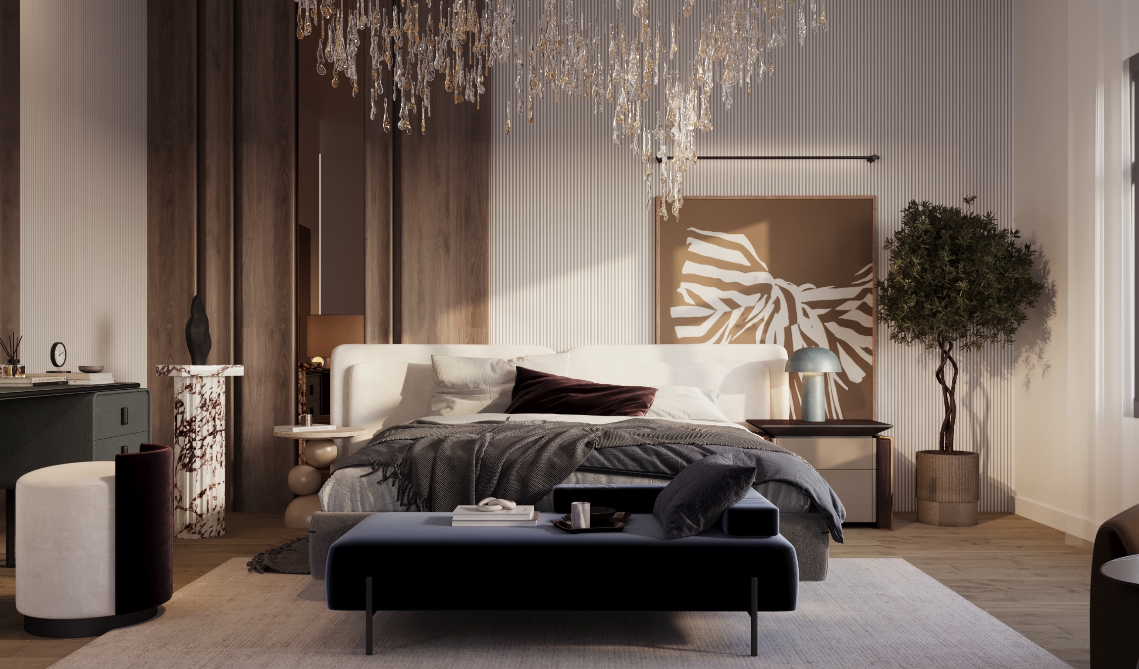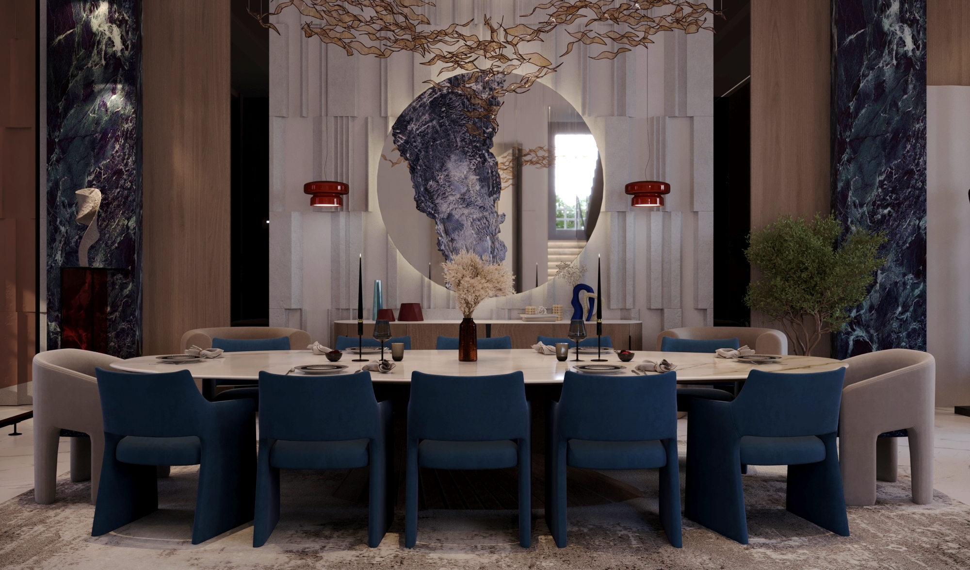 A luxurious mansion that seamlessly combines lavish elements with sophisticated design, creating an unparalleled residence characterized by grandeur, elegance, and meticulous attention to details.